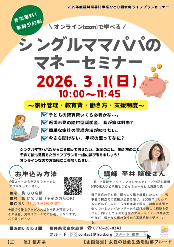 【福井県主催「シングルママパパのマネーセミナー(オンライン)」のご案内】