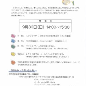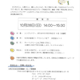 みなさまいかがお過ごしでしょうか。 さて9月のシングルマザー・グループ相談会が台風の影響で 中止になったため、急遽10月にグループ相談会を実施します。…