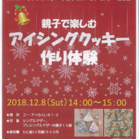 シングルマザー応援企画! フルード初のクリスマスイベントは 『アイシングクッキー作り体験』です。 クリスマスにちなんだ可愛いクッキーを親子で作って、 …