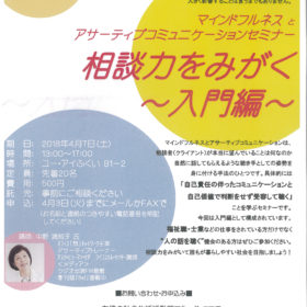 『相談力をみがく!入門編』を開催いたします。 4月7日(土)13:00~17:00 ユーアイ・ふくいB1-2 にて。 参加費500円 講師はアサーティ…