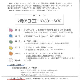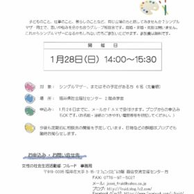来年1月のシングルマザー・グループ相談会のお知らせです。 子どものこと、仕事のこと、暮らしのこと… 同じ立場同士で話をしませんか? 日 時:1月28日…