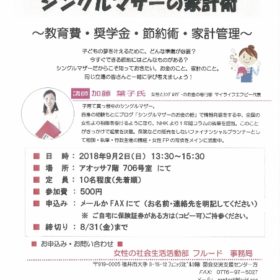 ようやく子どもたちの夏休みが終わりましたね。 毎日のお弁当作りから解放されてほっとされている方も 多いのではないでしょうか! さて9月のシングルマザー…